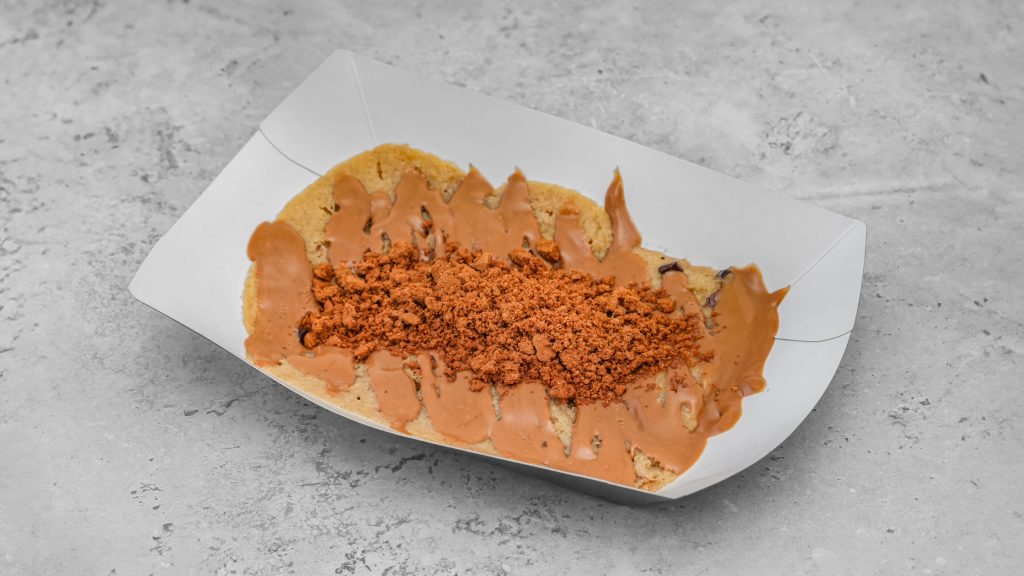 Biscoff Sauce Drizzled over Biscoff Crumb