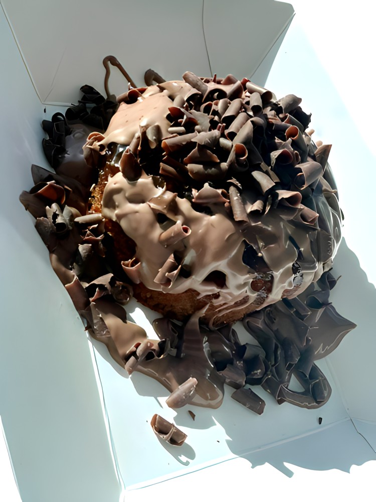 Milk Chocolate Sauce Drizzled over Milk Chocolate Curls