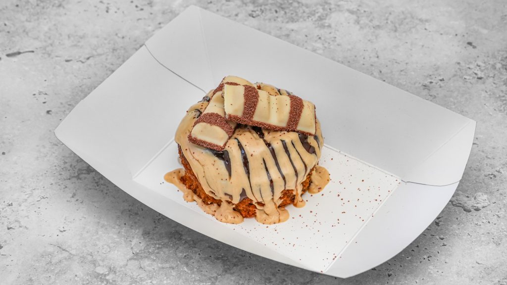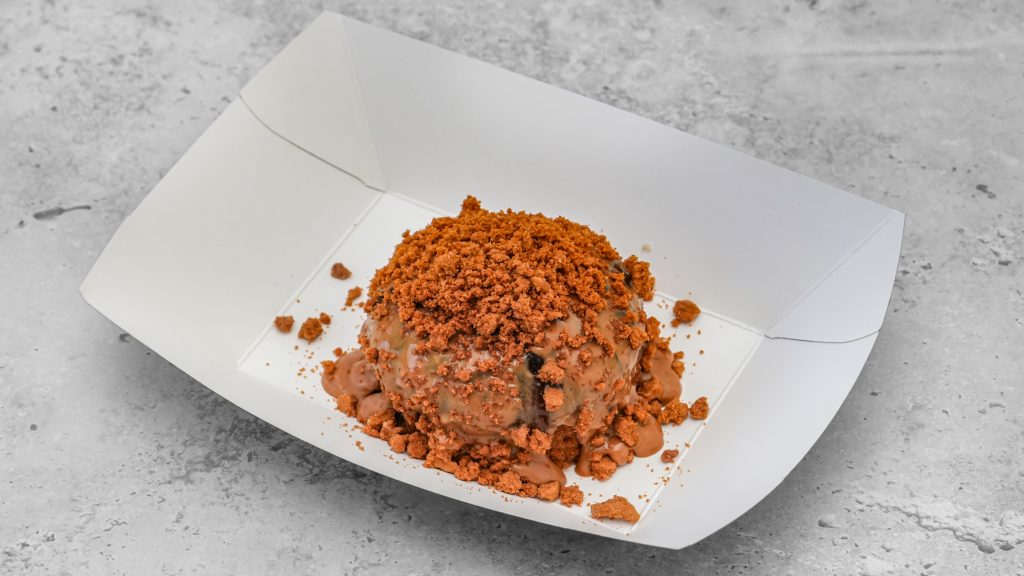 Biscoff Sauce Drizzled over Biscoff Crumb